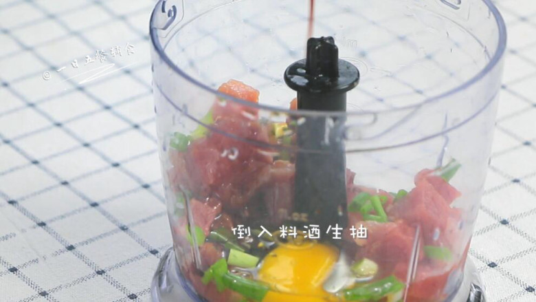 4. 放入料理机。 >>咸味靠一点生抽调节,1岁以下宝宝不需要,有鲜味就很棒了。