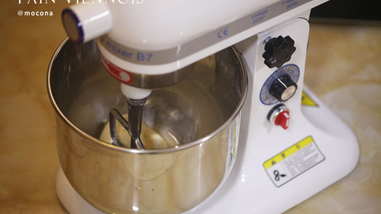 2. 用厨师机(UKOEO)的搅拌桨,慢速(4档)2分中速(6档)4分