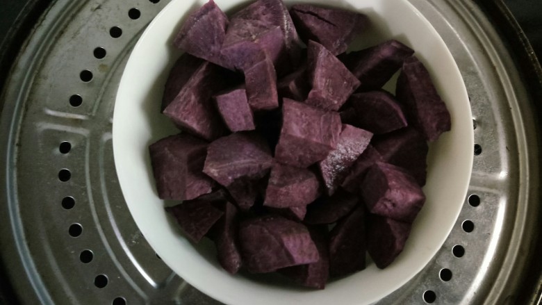 2. 紫薯洗净去皮切成小块!