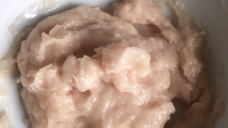 22. 鱼茸中分次加入葱姜水一边加一边搅打一个方向搅拌鱼茸稀到搅拌时出现声音时差不多了加一点料酒 味精胡椒粉最后加盐 盐很关键一定要最后加 一加盐鱼胶就出来了继续搅拌鱼茸会上劲然后加一个鸡蛋白继续打不要急 等蛋白融入鱼茸中再加生粉(少量)再一个方向搅拌就可以了