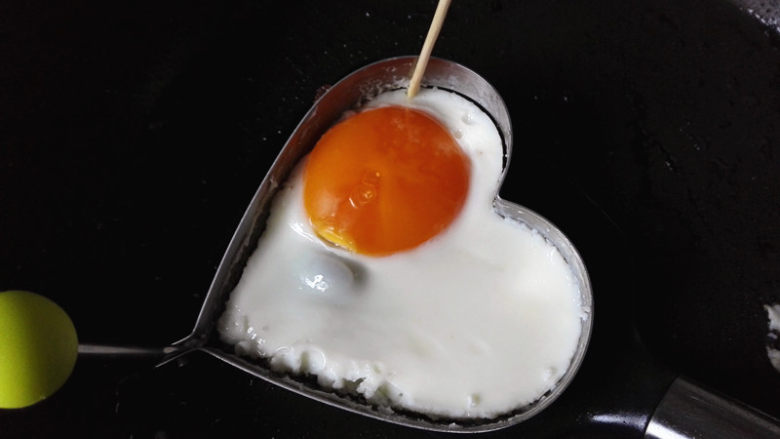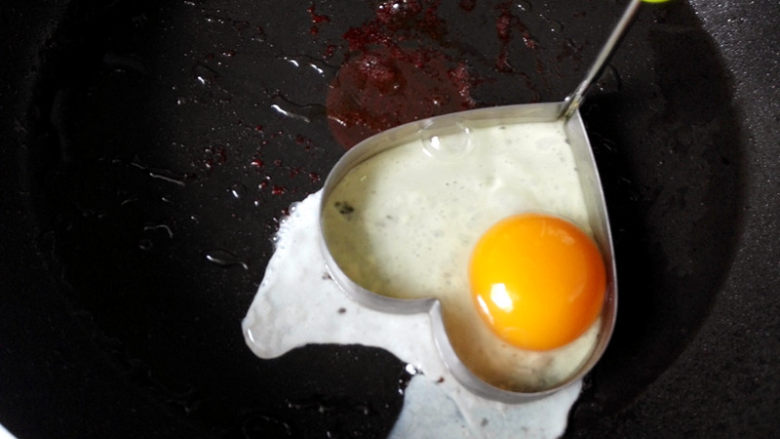 7. 把剩下的黄油放入锅中,化开后,放入煎蛋模具,鸡蛋打入其中,