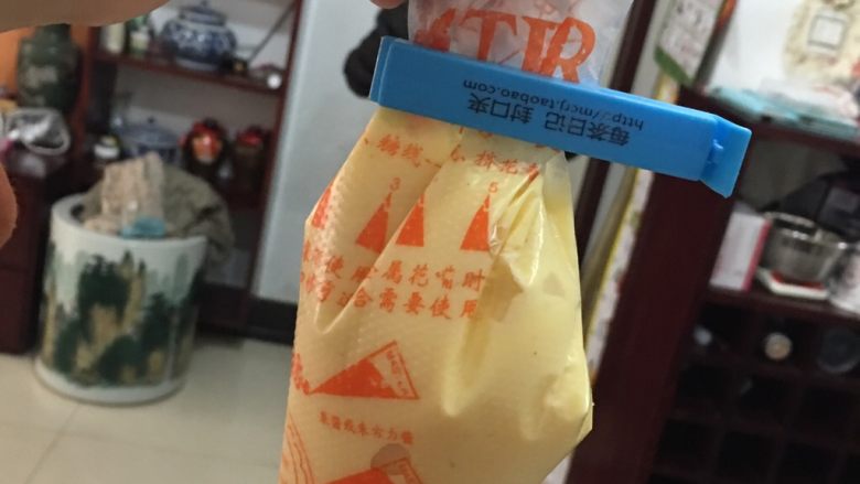 8. 裱花袋不用裱花嘴,套在高杯子里,把糊糊倒进去。