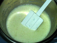 4. 将蓝莓牛奶,糖粉,油和牛奶倒入大碗