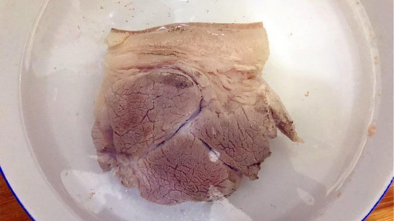 11. 将煮好的五花肉捞出,放入准备好的饮用水内,过凉