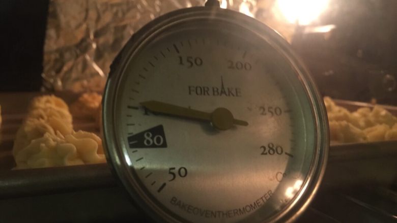 9. 提前预热烤箱,上火120°C,下火120°C,烘烤约40分钟,晾凉即可食用。(家用烤箱建议上下火100°C烘烤一个小时左右)