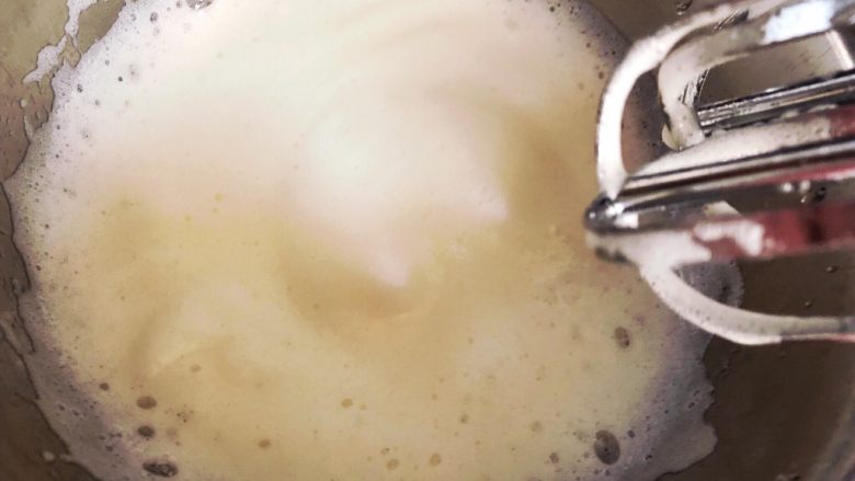 10. 打发到湿性偏中性发泡,提起有小小的弯钩。