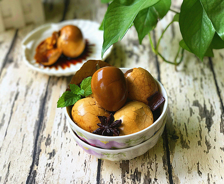 3. 煮熟后取出鸡蛋,稍凉后将蛋壳敲碎