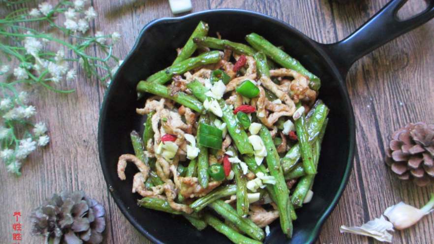 用料简单,容易上手,翠绿色的豆角鲜辣脆嫩,干香辣爽,搭配滑嫩肉丝开胃下饭,很是让人喜欢。这道菜的重点在于煎至豆角,豆角营养虽好但不易熟,食用没有彻底熟透的四季豆就会中毒,因此制作时要注意小火慢炸, 让里面充分熟透。