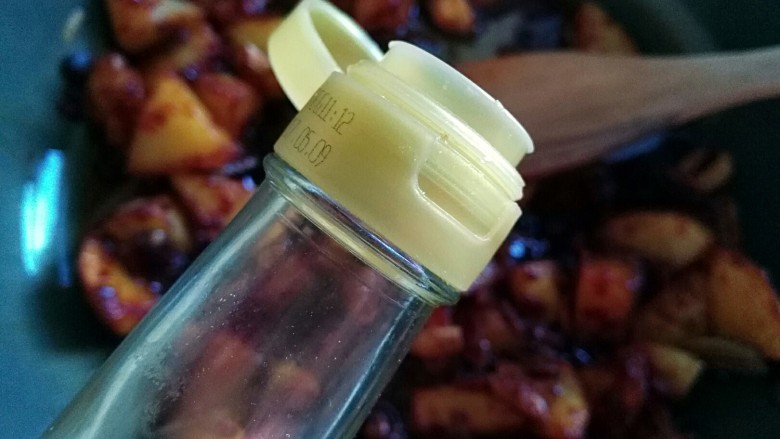 13. 大米搓洗两次入电饭煲 将炒好的土豆倒入电饭煲