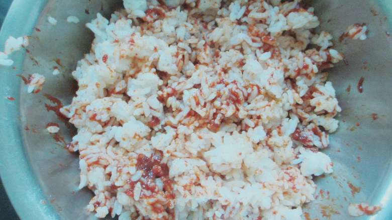 10. 剩米饭加入2勺韩式辣酱拌匀
