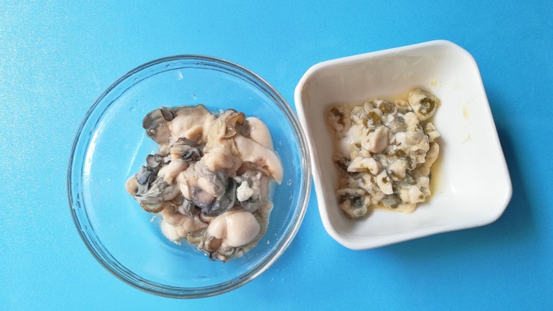 6. 剪开牡蛎白色肚腩,将黑色内脏全部去除
