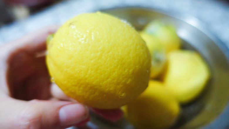 1. 市售柠檬外面都是有一层蜡的,可以温水浸泡十分钟搓洗,也可以直接用盐搓洗,我是选择用盐。