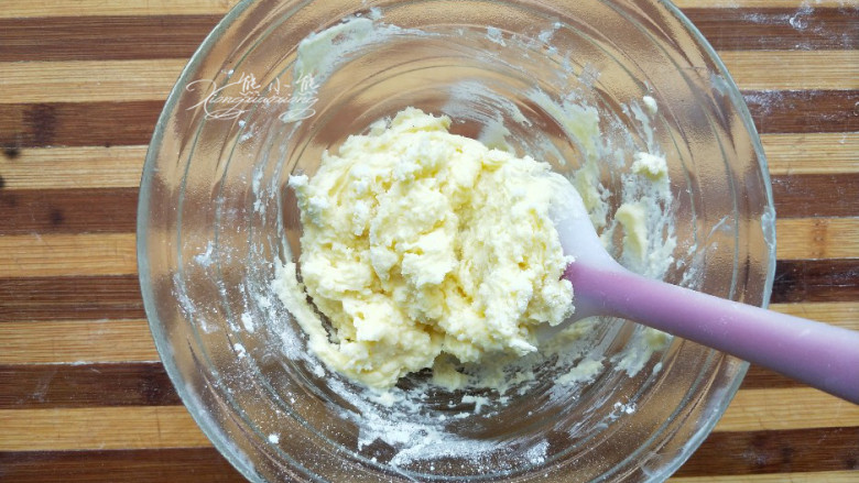 5. 加入椰蓉用刮刀翻拌。