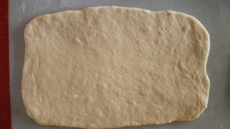 7. 面团发酵好后擀成厚约0.7cm的片。