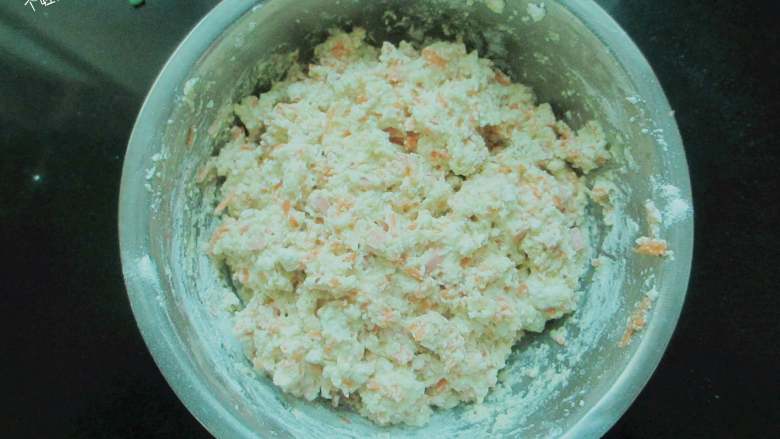 5. 把豆腐、火腿肠。胡萝卜放在盆里