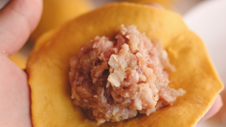 6. 放上内馅儿,我调的猪肉白菜馅儿,可以根据自己的喜欢来。