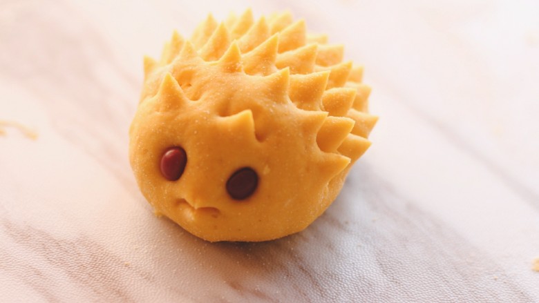 8. 在背部位置剪满刺猬的刺,注意不要剪太深露出馅儿,一排一排之间错开会比较好看。