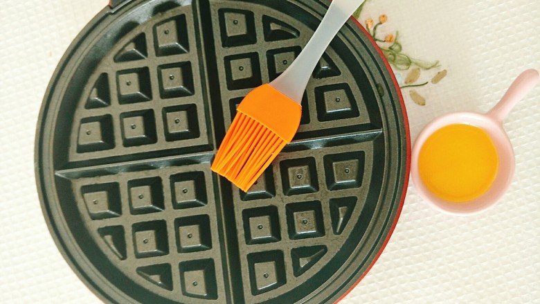 4. 用刷子蘸取黄油在烤盘上刷一层黄油