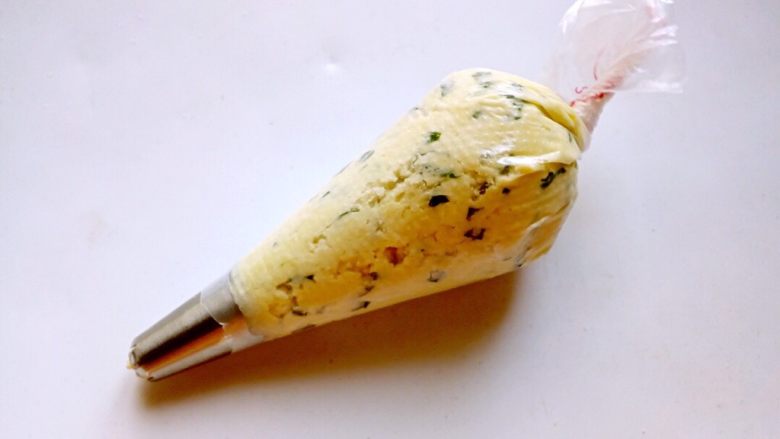 - 3.小葱洗净后一定要切得碎碎的,更好挤,切得太大容易堵住花嘴。