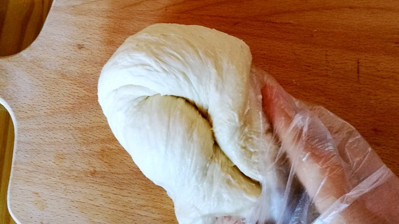 5. 继续揉至第二次揉面结束,取出边摔边揉十次左右