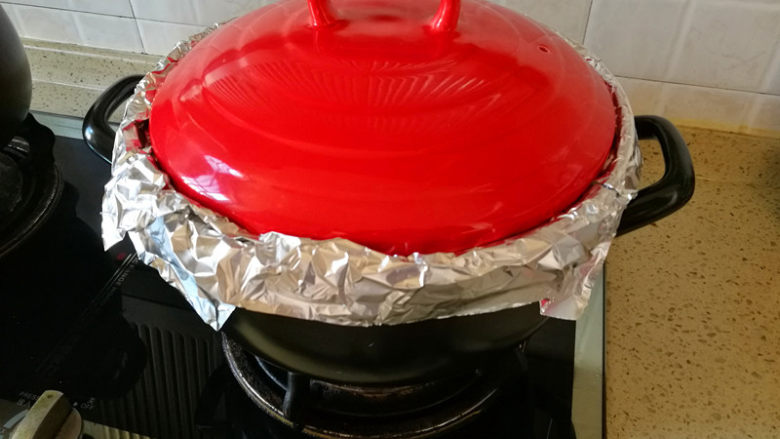 8. 锡纸包满整个砂锅。摆入羊排