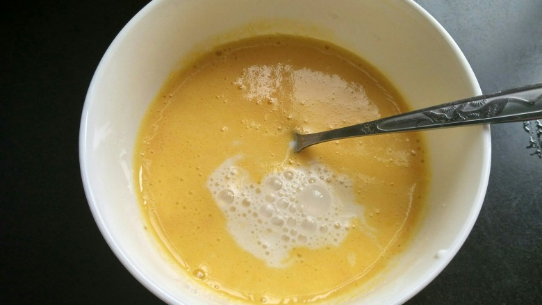 8. 搅拌好的蛋挞液。