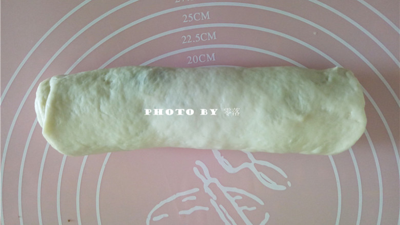 9. 沿着面片短边,从一头卷至另一头,收口处捏实;