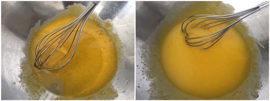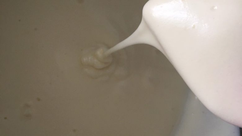 6. 用手动打蛋器一字搅拌到光滑无颗粒状态;