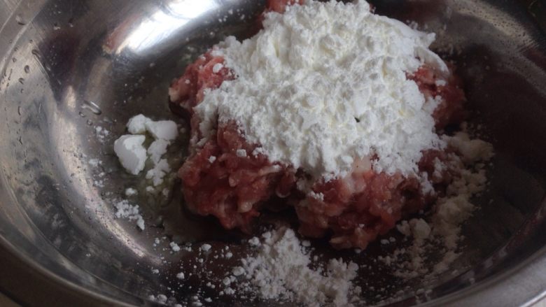 3. 加入切成小粒的香菇,拌匀后,摔60下,起胶