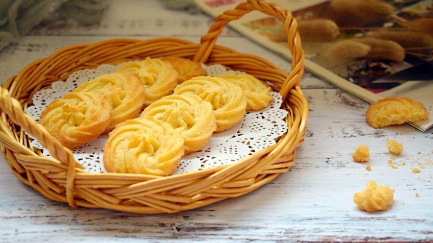 12. 在烤盘上挤出曲奇形状,中间要间隔