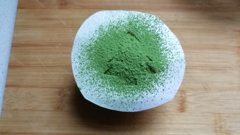 10. 将漏空纸放在撒好的蛋糕椰蓉表面上;