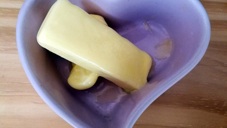5. 冷藏12-17小时,第二天早晨,取出面团放在室温中回温。取黄油,用电吹风吹以软化,或隔水加热软化,但不要完全融化,那样不好揉。