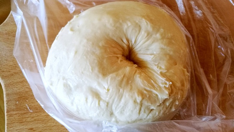 4. 揉面五分钟左右,面团成团即可。装入保鲜袋,放入冰箱冷藏(放在放蔬菜水果的恒温格中)