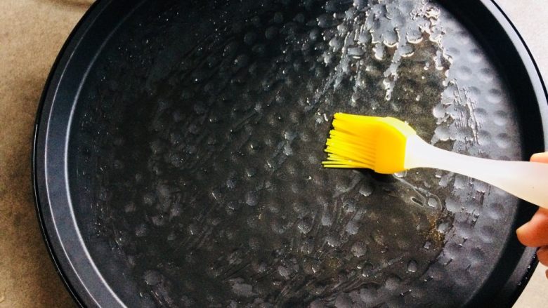 8. 倒入10ml食用油到电饼铛中,用刷子抹平。