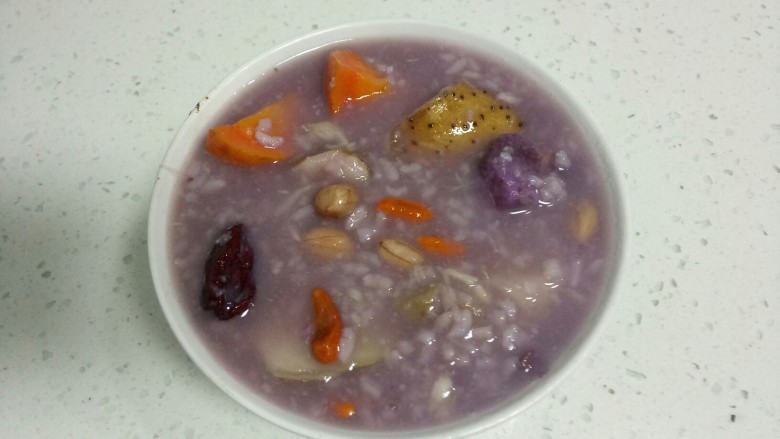 5. 倒入山药、紫薯、红薯、胡萝卜、土豆大火煮开,煮10分钟。