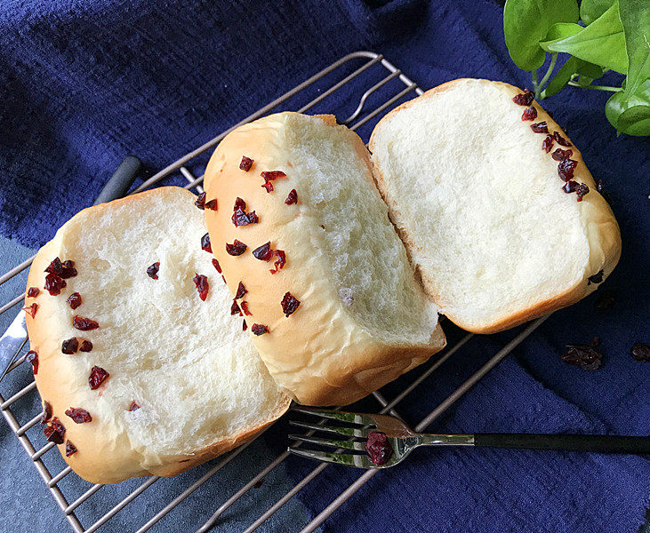 10. 再自上向下卷起放入面包桶,全部卷好撒些蔓越莓粒