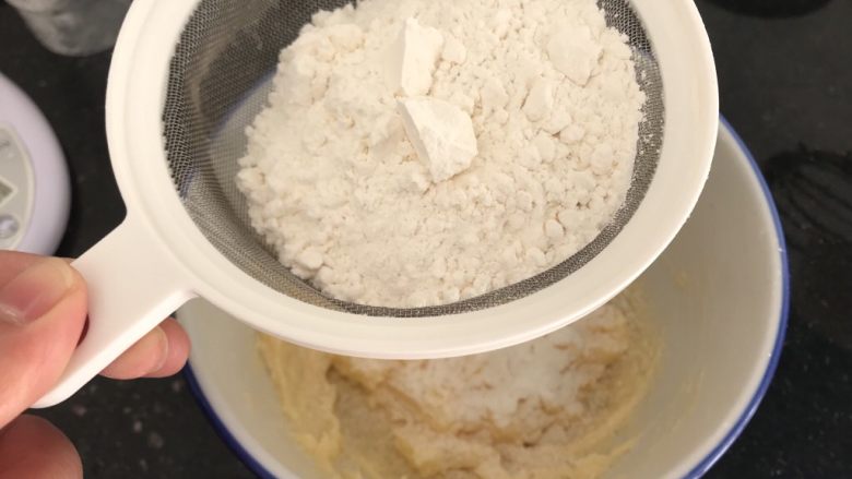 5. 入25g全蛋液(可分2次加入,更容易拌匀)