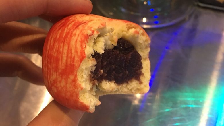 4. ac超级红加几滴水稀释,用毛刷刷在面团外皮,做成苹果样子,在加上叶子就可以了!