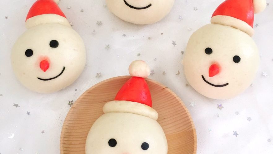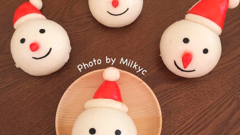 3. 取出面团,充分揉光滑。 分割成4-5个大面团,再留一部分做帽子装饰部分。 揉4-5个大圆球,用掌心按扁一点,太鼓鼻子容易掉。 再分别捏出帽子,帽檐,毛球,鼻子。 盖上保鲜膜防止干燥。