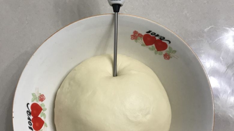 5. 放入发酵箱,温度调节在27度,发酵至用手指沾面粉戳洞洞口不回缩不塌陷为发酵好。