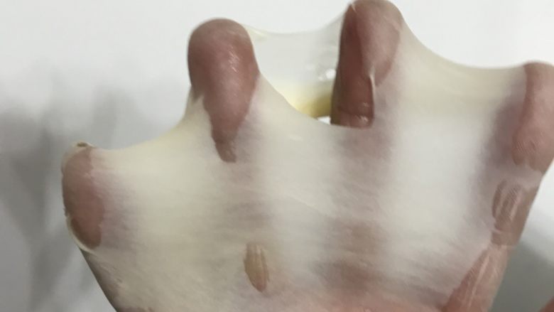 4. 加入软化的黄油,用二档把黄油揉进面团后,厨师机六档揉至完全扩展阶段,出手套膜,拿出来整圆放入大碗里,盖上保鲜膜。