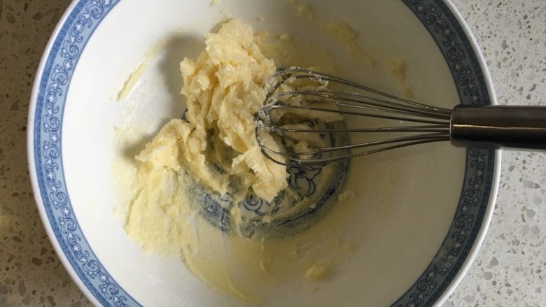 5. 芝士派馅制作:奶油奶酪室温软化,加入细砂糖搅打顺滑