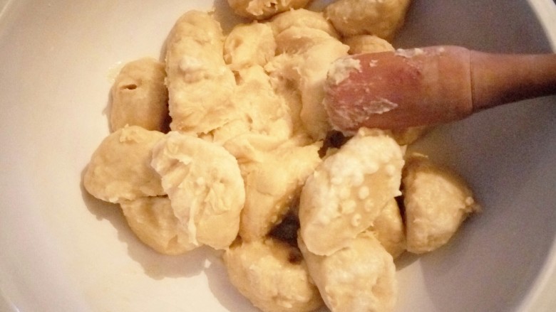 8. 揉光滑后倒少量油摸面,以免表皮风干