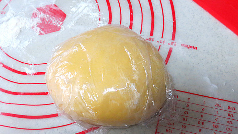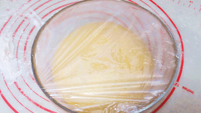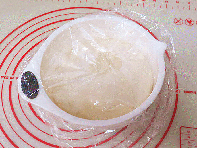 3. 揉成一个光滑的面团,放入干净的容器里,盖上保鲜膜,进行第一次发酵