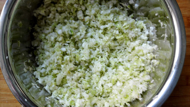 9. 白菜此时已经出水了,把白菜多余的水分挤出来,
