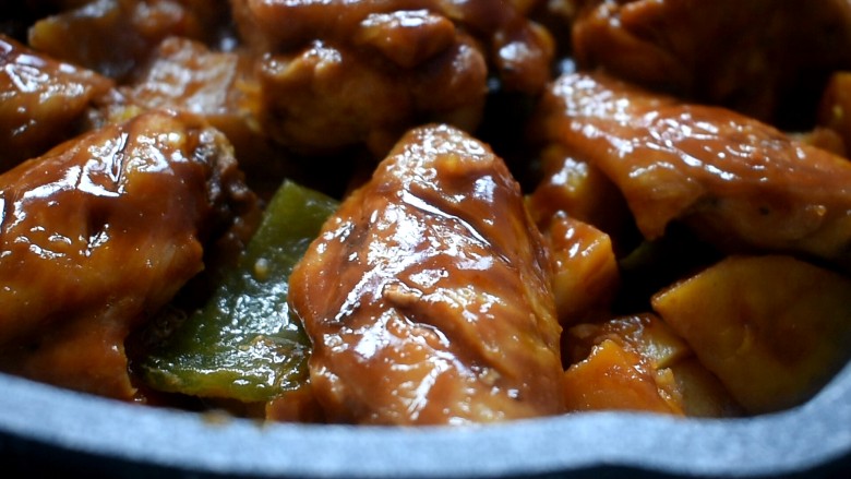 21. 时间到后,再刷一遍酱。再盖锅盖焖煮5分钟就好了