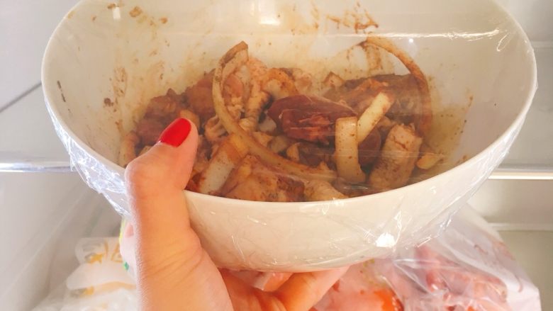 7. 保鲜膜一包,入冰箱。可以隔夜的,我一般早上弄好,晚上烧。