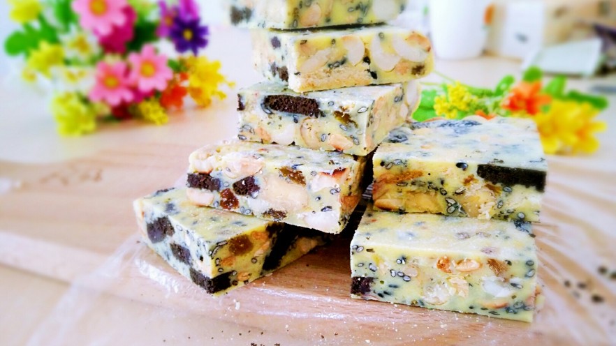 7. 再倒入坚果和饼干,此时可以关火了。