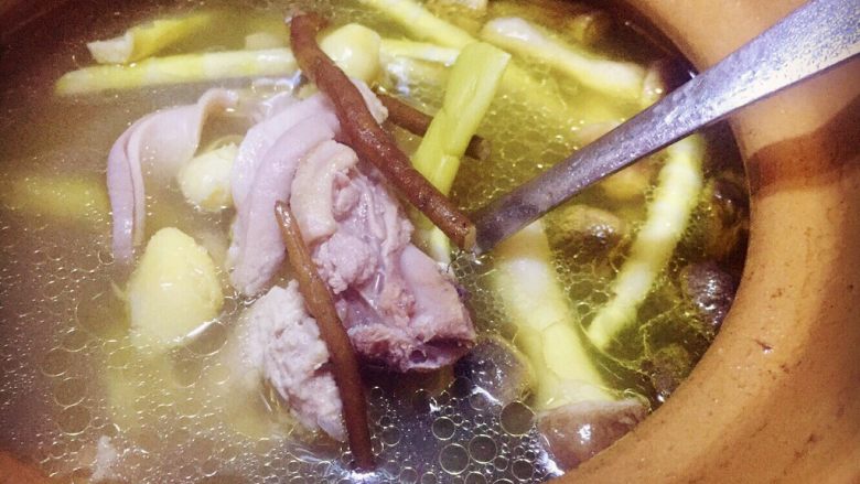 15. 汤再次沸腾后开小火盖上砂锅盖子煲汤,预计煲汤一小时中途搅拌2,3次