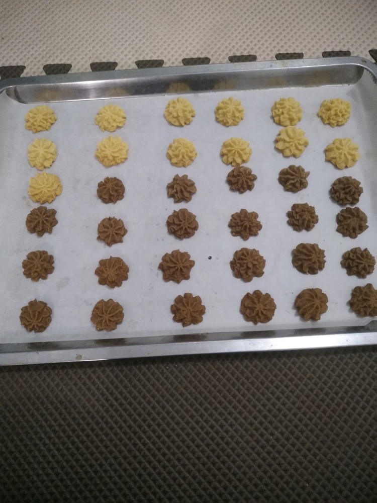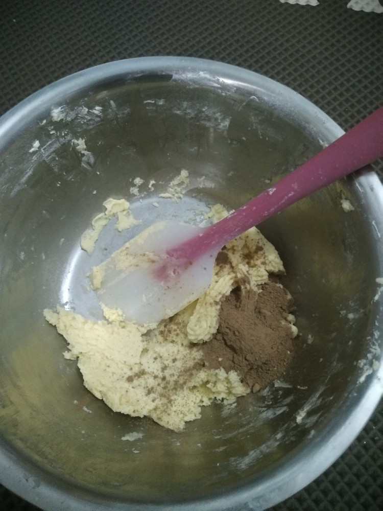 12. 留一半儿面糊加可可粉混合均匀可以做出双色曲奇。
